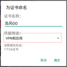 在弹出的对话框中为证书起一个名字,方便后期管理,凭据用途注意要选择“VPN和应用”,然后点击确定即可