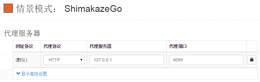 ,添加一个叫“ShimakazeGo”的情景模式(名称可随意),类型为『代理服务器』。