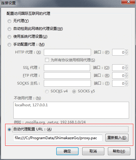 本帮助适用于安装了AutoProxy插件的Mozilla Firefox浏览器。