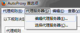 打开AutoProxy插件的设置主界面,点击菜单中的『代理服务器』-『编辑代理服务器』