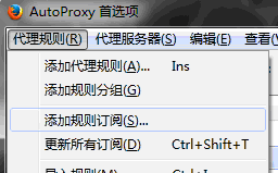 回到AutoProxy插件的设置主界面,点击菜单中的『代理规则』-『添加规则订阅』,然后点击左下角的『添加一个自定义订阅』按钮
